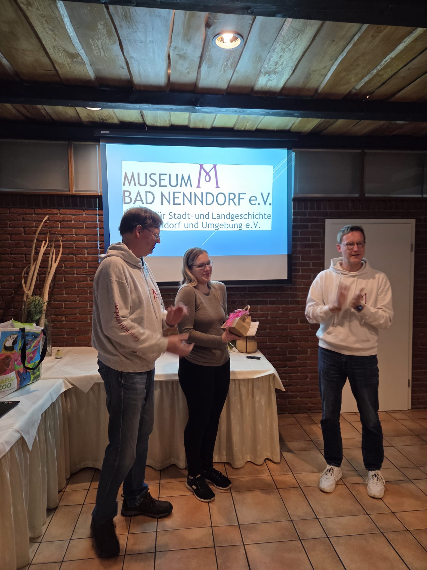 Auch der Samtgemeindebürgermeister lies es sich nicht nehmen ein Flachgeschenk zu übergeben, welcher aber wohl etwas kleiner ausfällt, da die Stadt Bad Nenndorf das Museum ja regelmäßig aus dem Haushalt unterstützt. Der Verein bedankte sich beim nicht wieder antretenden Samtgemeindebürgermeister für seinen, auch ganz persönlichen Einsatz von Anfang an und für das Möglich machen des guten Starts des Vereins und des Museums.